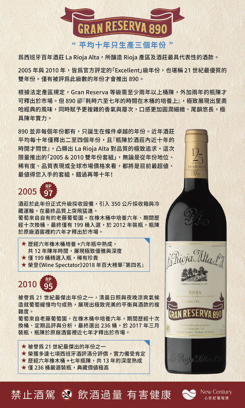 La Rioja Alta 890 經典年份,隆重登場!